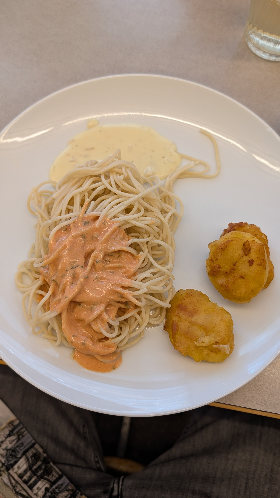 Als Hauptgang zauberten die anderen beiden Gruppen Spaghetti 5P, eine feine Rahmsauce und Chicken Nuggets. Wer hat das nicht gerne? Ahhh … es war einfach mega fein!
