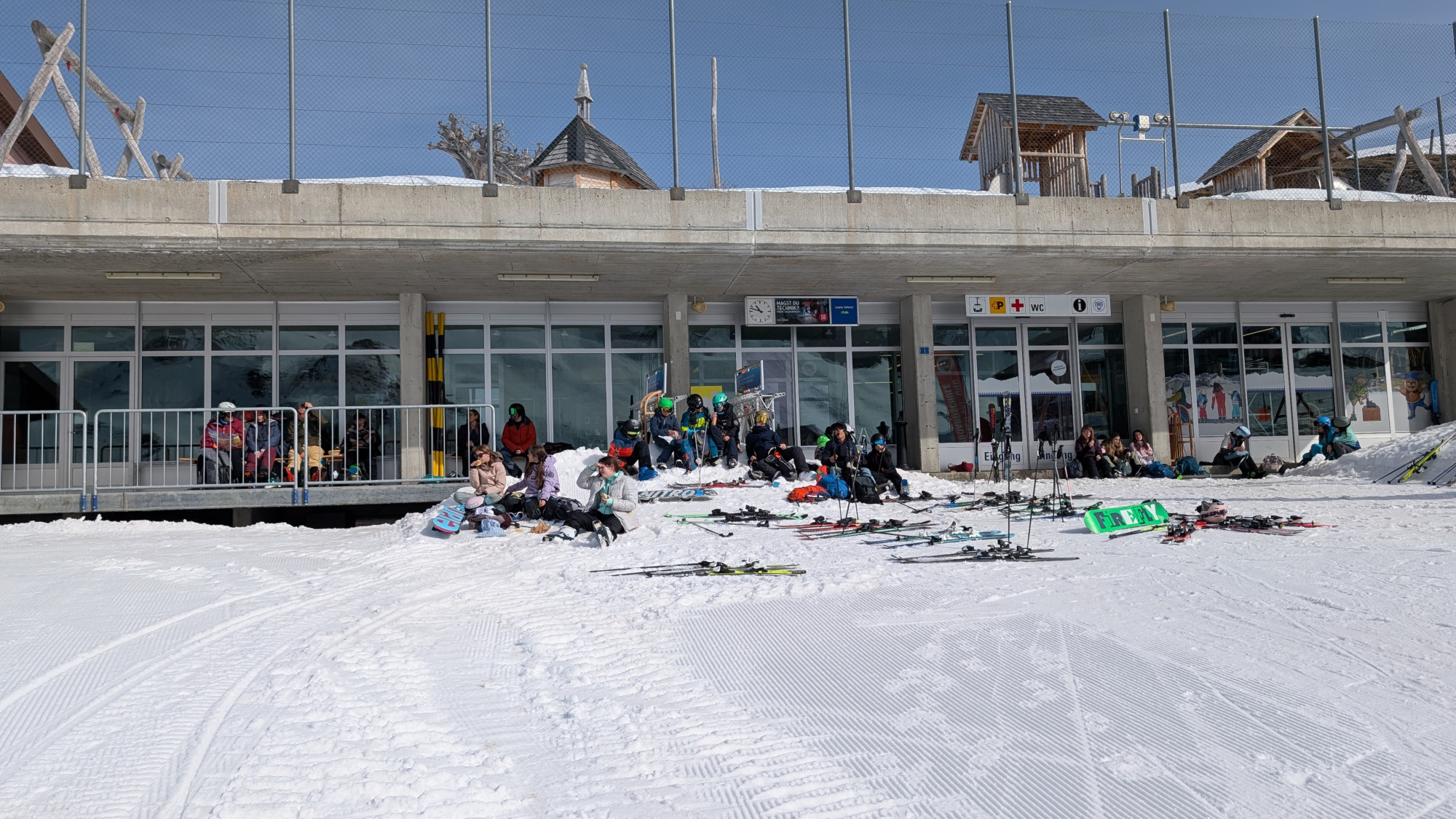 Hallo zusammen. Heute um 8 Uhr gings endlich los. Wir trafen uns aufgeregt beim Sportplatz in Seedorf. Wir fuhren zur Talstation Melchsee-Frutt. Wir bedanken uns für die freiwilligen Fahrer/innen. Oben angekommen gings schon auf die Piste. Nach dem Znüni lernten wir das Skigebiet kennen. Nach dem Zmittag fuhren wir in Gruppen weiter. Um 16.00 Uhr richteten wir unser Zimmer ein. Zum Znacht gab es Teigwaren und Rahmschnitzel. Vor dem Schlafen durften wir in Gruppen Spiele spielen.